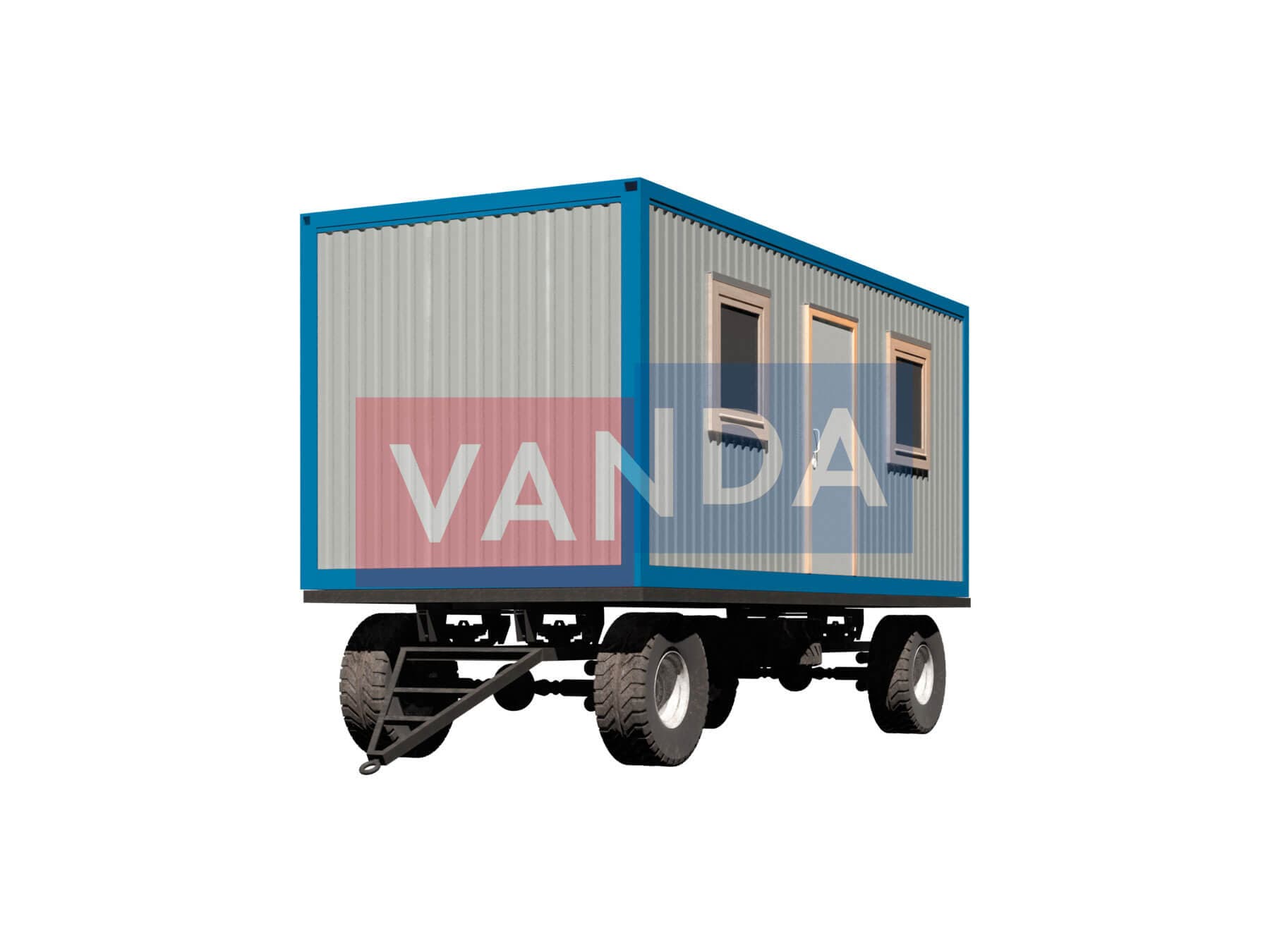 Прицеп бытовка на шасси 5,85х2,4 изготавливается из несущего каркаса (верхняя и нижняя обвязка): швеллер 100х50х3 мм., угловые стойки: сложно - гнутый угол 90х90х3 мм., крыша блок-контейнера: металл сварной 0,9-1 мм., качественная наружная отделка: оцинкованный профлист, внутренняя отделка стен: Панели ПВХ, внутренняя отделка потолка: Панели ПВХ, вспомогательный деревянный каркас (стены): брусок 40х75 мм., лаги пола: обрезная доска 40х100 мм., лаги потолка: обрезная доска 40х100 мм., выполнено утепление: Минеральная вата «ISOVER» – 50 мм. и пароизоляция: плёнка техническая, черновой пол состоит из: обрезная доска 20 мм. (2 сорт), чистовой пол покрыт: ДСП строительное 16 мм., отделка пола выполнена из качественных материалов. Контейнер комплектуется окнами: деревянное, двойное остекление 800х1000, входной дверью: ДГ 21-8 обшита снаружи оцинкованным листом, врезной замок и внутренними дверями: ДГ 21-8 (при наличии перегородки). Если в БК присутствуют перегородки, то для них используется: брусок 40х50 мм.