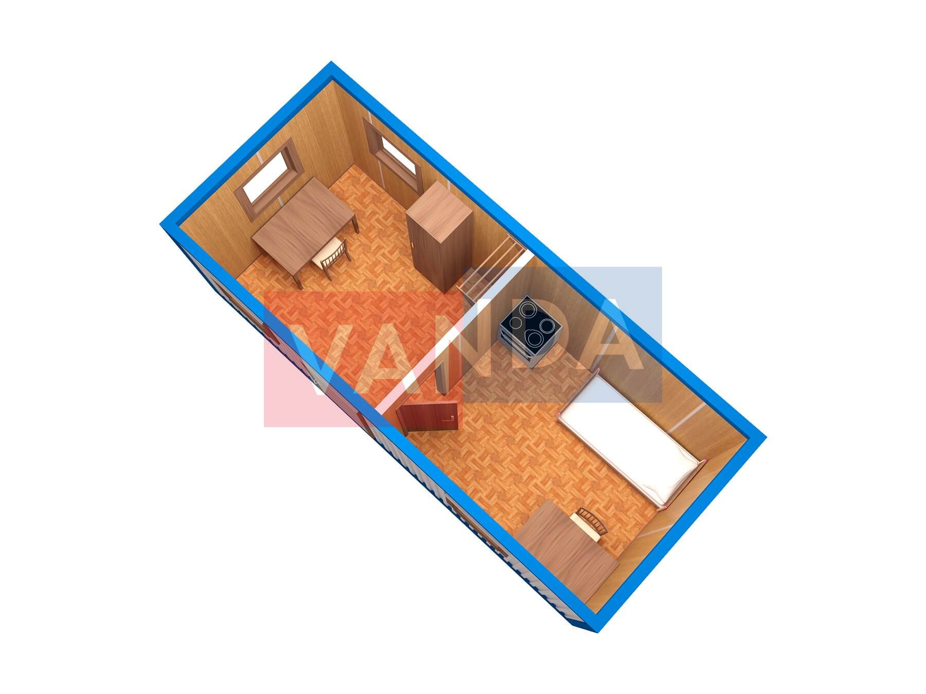 Строительная бытовка со сборкой на месте №4 (вариант 3) 5.8x2.2 12.76 Вагонка деревянная Имитация бруса 140 500 р. Уточняйте у менеджера